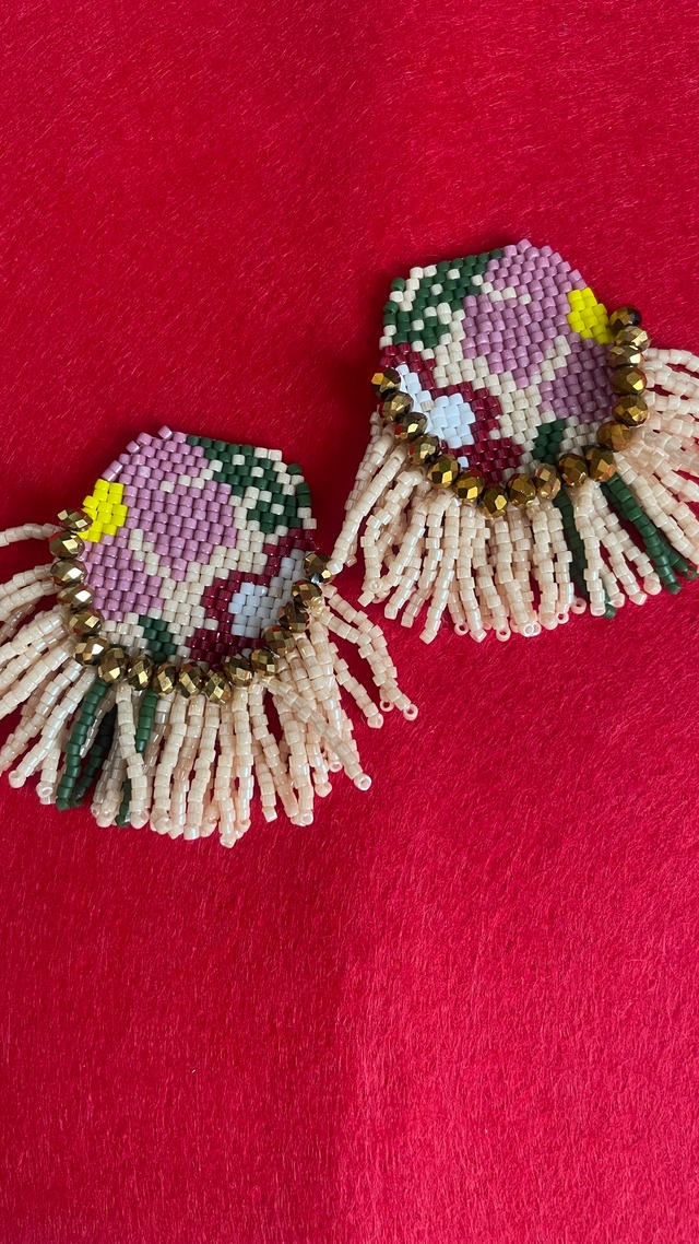 【ブーケ】 ご覧いただきありがとうございます。 こちらはハンドメイド作品です。 デザインのテーマ【ブーケ:ピンク】 花屋さんがTシャツ✖️デニムに ビーチサンダルを履いて 大きな花束を持って歩いてるのを見て、 「花束を持つ人は ドレスアップしてる人ばかりではないな」 って思ったの。 お祝い事とか お礼とか 何かしらの理由をつけて花束を送るけれど 花屋さんは理由なく 「いい花が入ったから(作った)」 と言っていた。 とても印象深い。 『カジュアルファッションに花束』 これは、 私のオシャレイメージのひとつ。 理由はいらない。 日常に連れて歩ける 小さな花束を。 色違いも見てね! 長さ:約10センチ 重さ:約8g ピアス金具:金メッキ 【注意事項】 ご購入後の返品は承っておりません。ハンドメイドである特性上、神経質な方はご遠慮ください。 ※ピアス(金メッキ)を基本としています。 イヤリングご希望の場合、別注となりますのでお問い合わせください。 ※ 一本の糸で細かなビーズを編み付け、ぶら下げているので 強く引っ張ったりすると破損する可能性があります。 取り扱いにはご注意ください。 ※ サイズの誤差やビーズのばらつきが ある場合もございます。予めご了承ください。 *** 【Tシャツ×デニムが“自分らしいオシャレ”に。唯一無二のビーズピアス】 シンプルなTシャツとデニムのコーディネートに、 ひとつプラスするだけで一気にオシャレに♡ そんな“主役級”の存在感を持つピアスを目指して、デザインしました。 派手めでボリュームのあるフォルム、 そして個性的な色合わせが特徴です。 私自身もつけていると、ほぼ毎回「オシャレなピアス!」と言ってもらえます♡ 自由な感性で組み合わせたミユキビーズやガラスビーズをたっぷり使い、 デザインから、ひと針ひと針編み進めて仕上げるまで、丸1日以上かかる 手間ひまを惜しまない一点ものの作品です。 「ちょっと高いかも」と思われるかもしれません。 でも! 他にはないデザイン・配色・質感を、 あなたの日常をグレードアップしてくれるアクセサリーとして 楽しんでいただけたら嬉しいです。