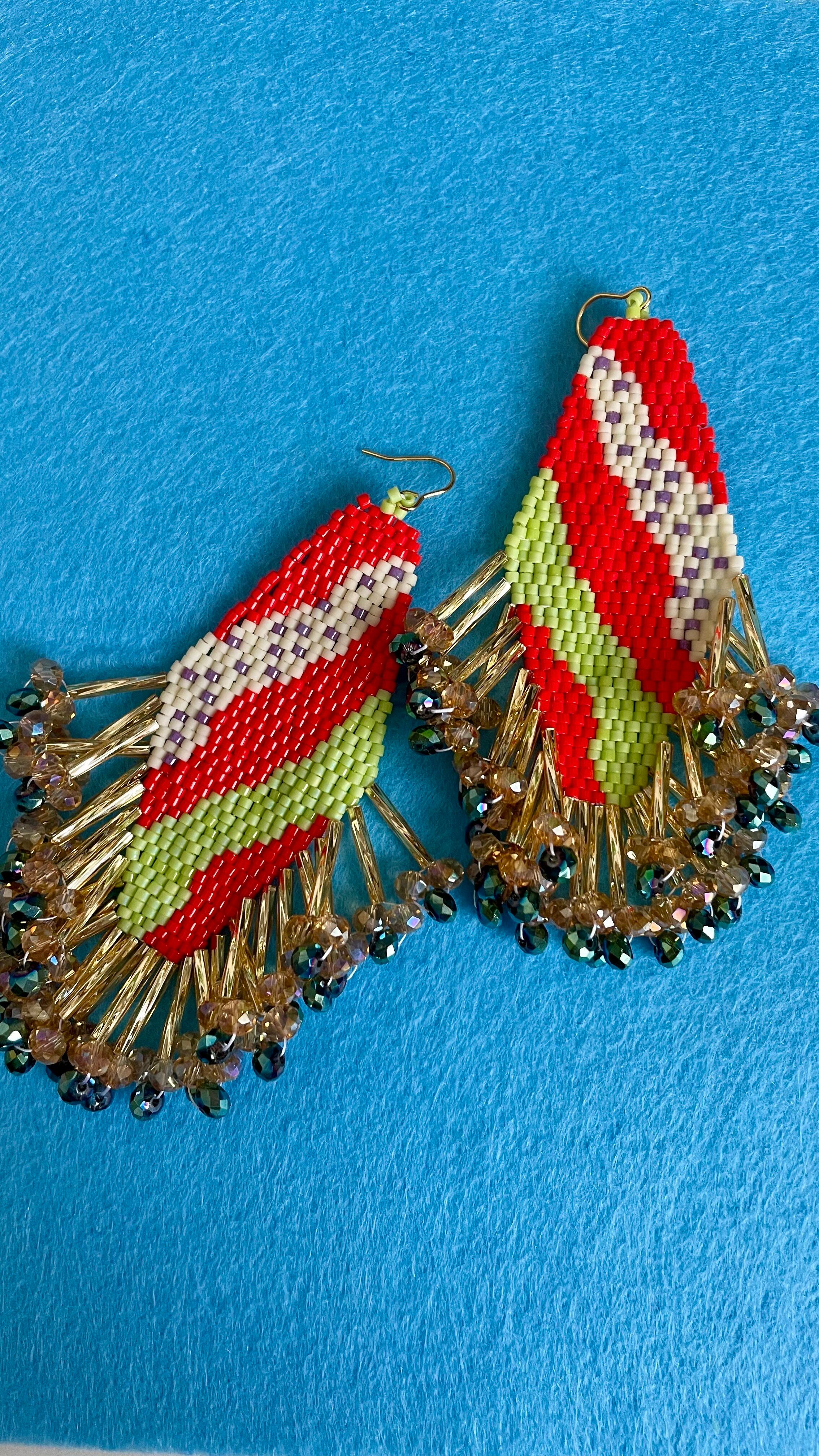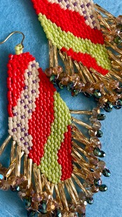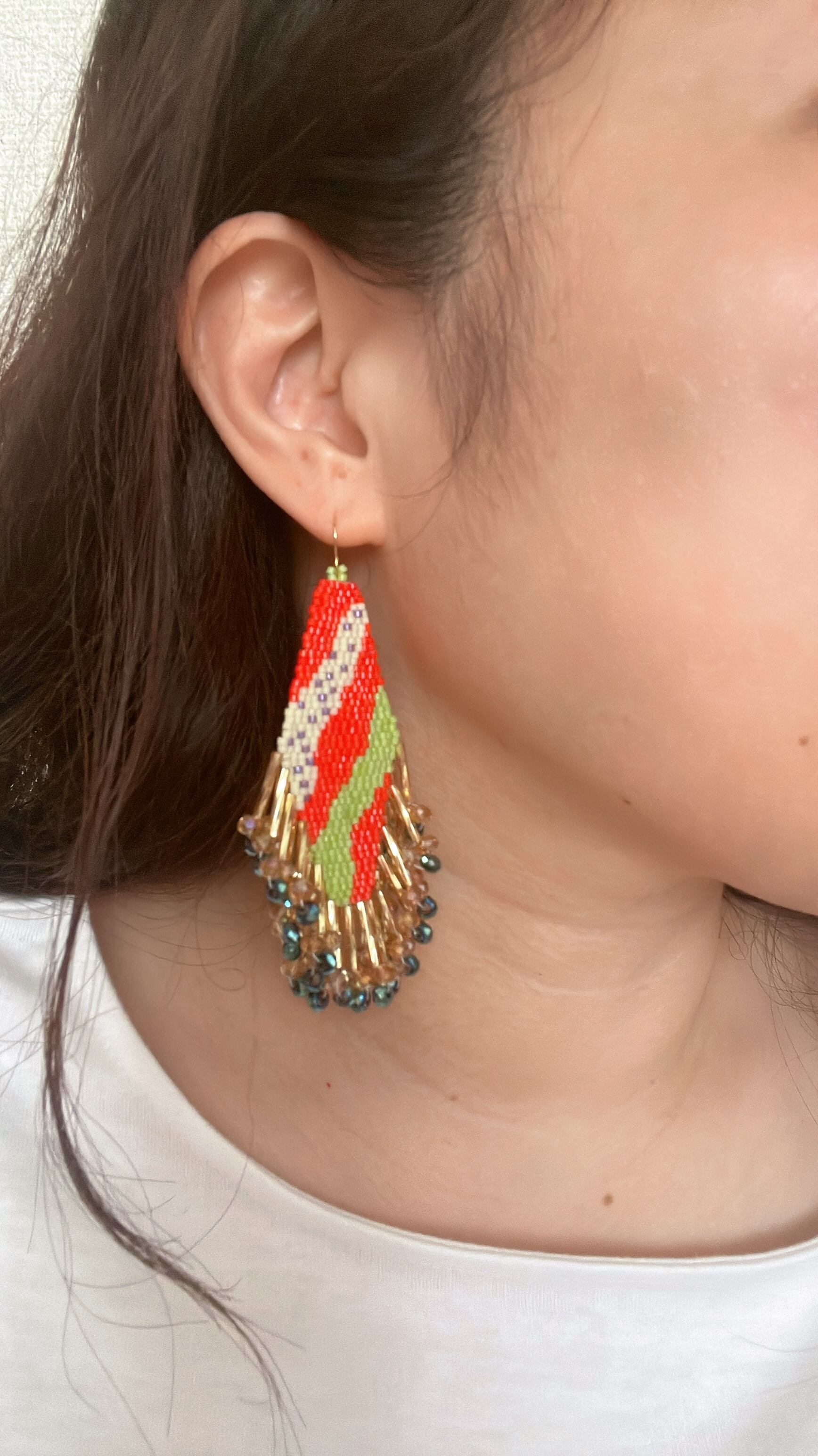 ※ 一本の糸で細かなビーズを編み付け、ぶら下げているので