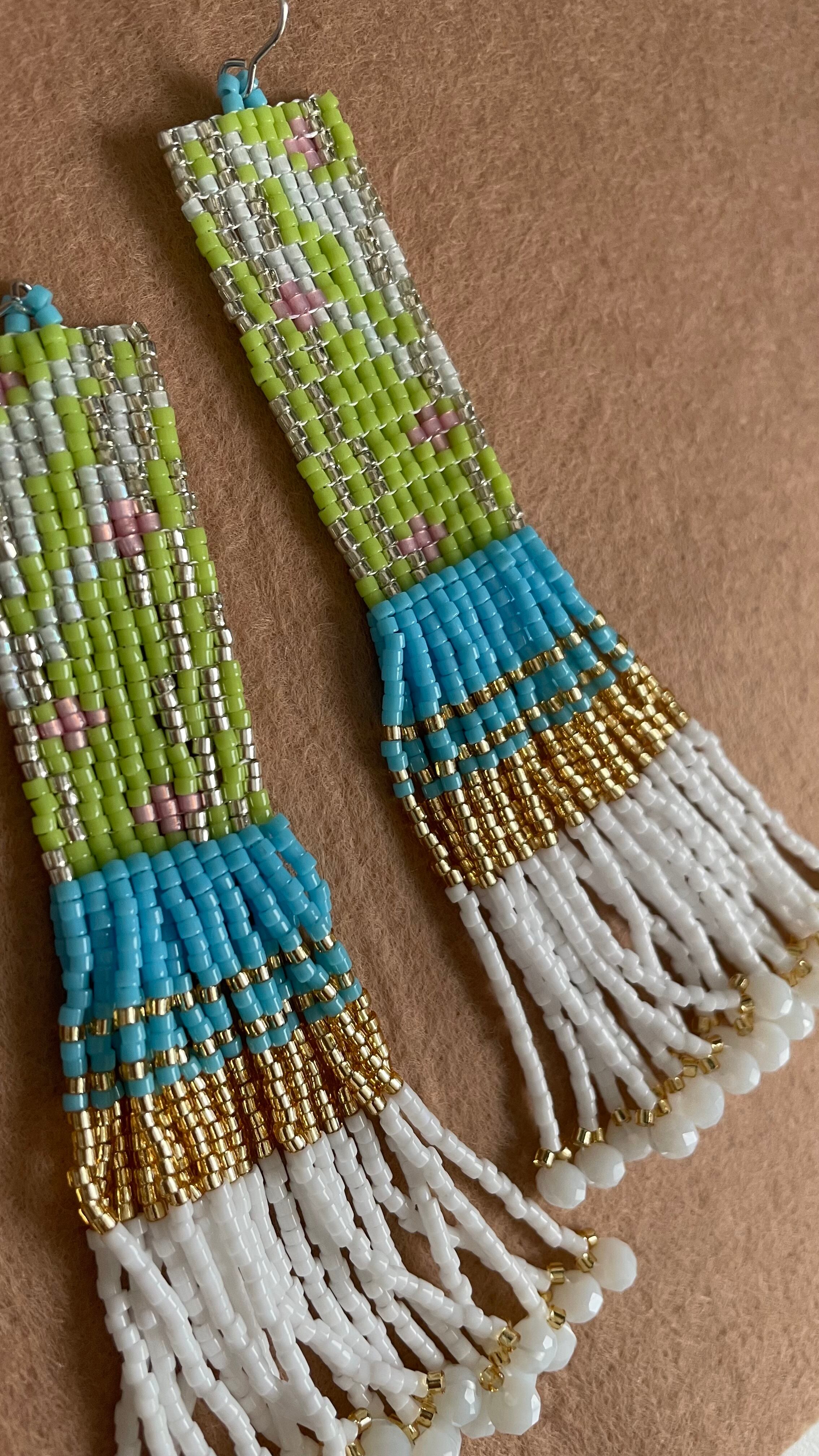 ※ 一本の糸で細かなビーズを編み付け、ぶら下げているので