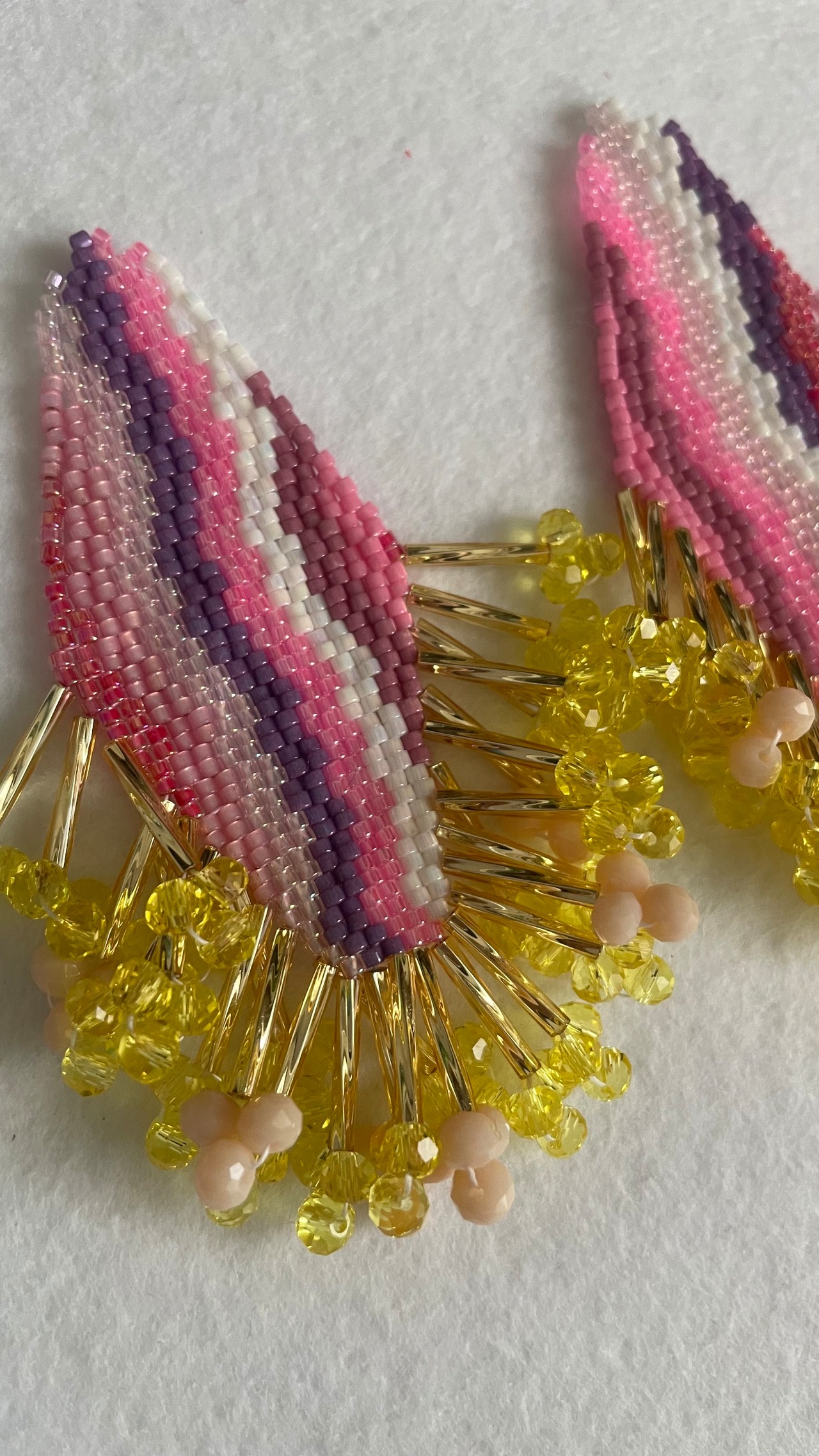 ※ 一本の糸で細かなビーズを編み付け、ぶら下げているので