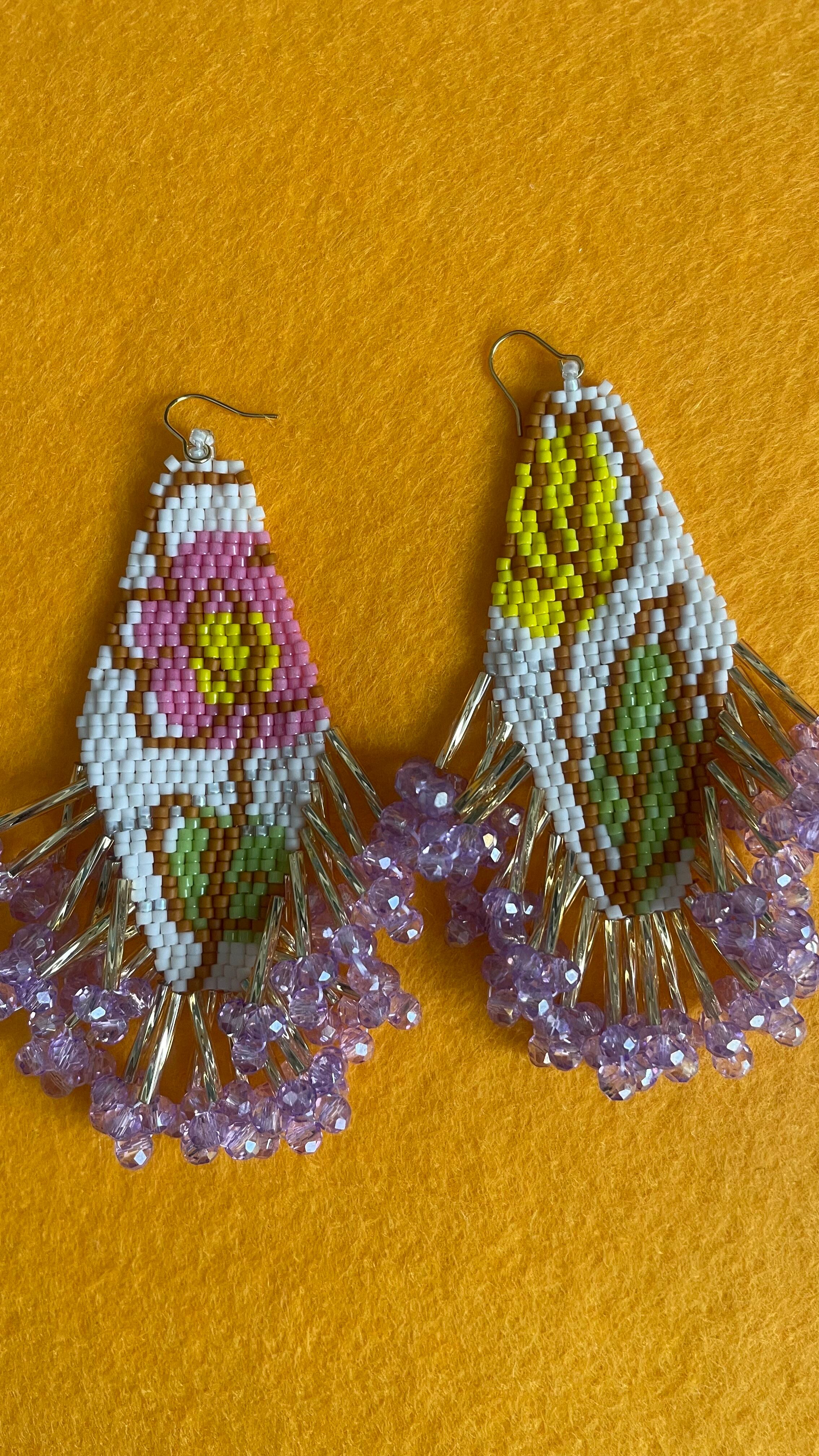 ※ 一本の糸で細かなビーズを編み付け、ぶら下げているので