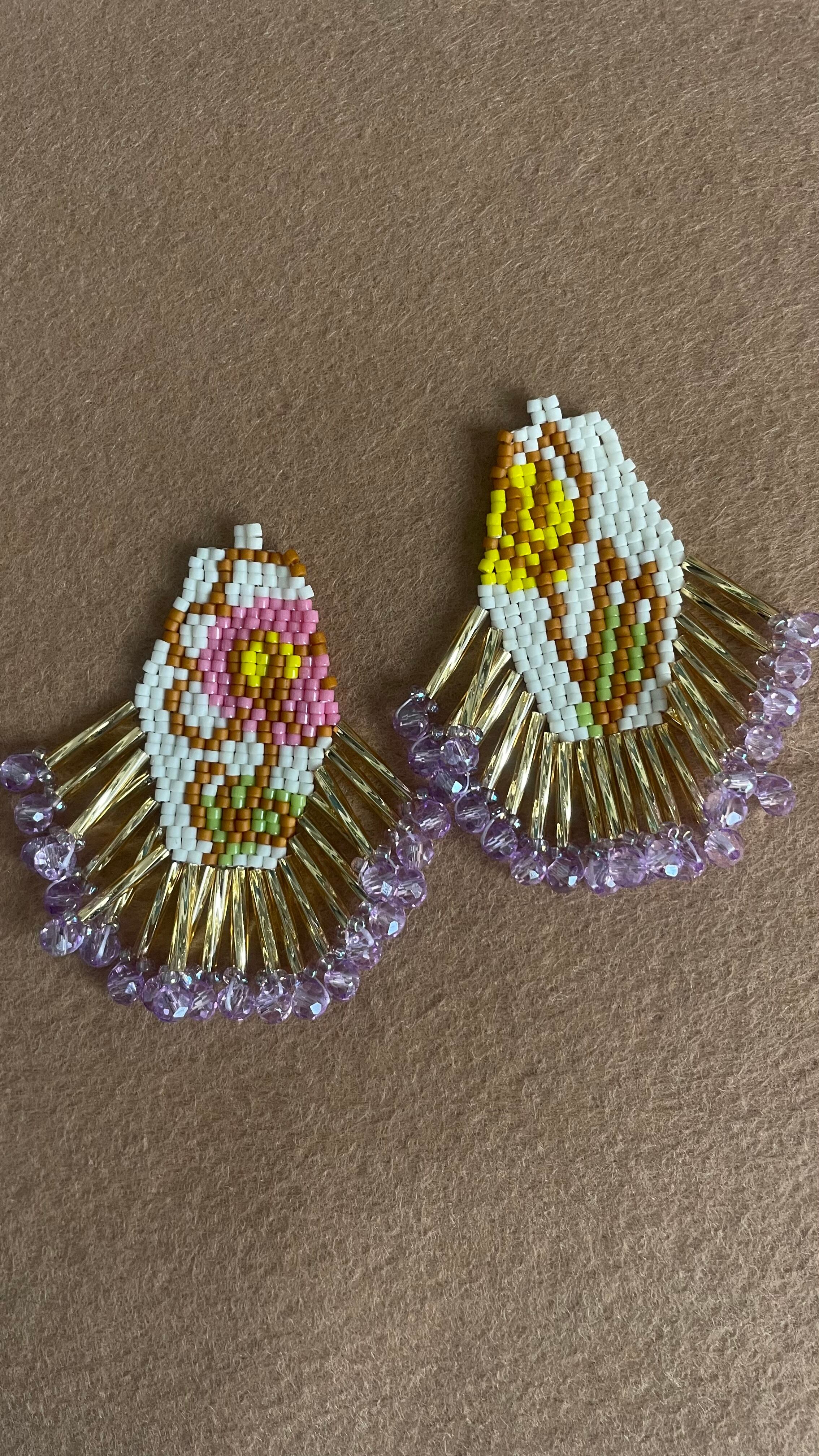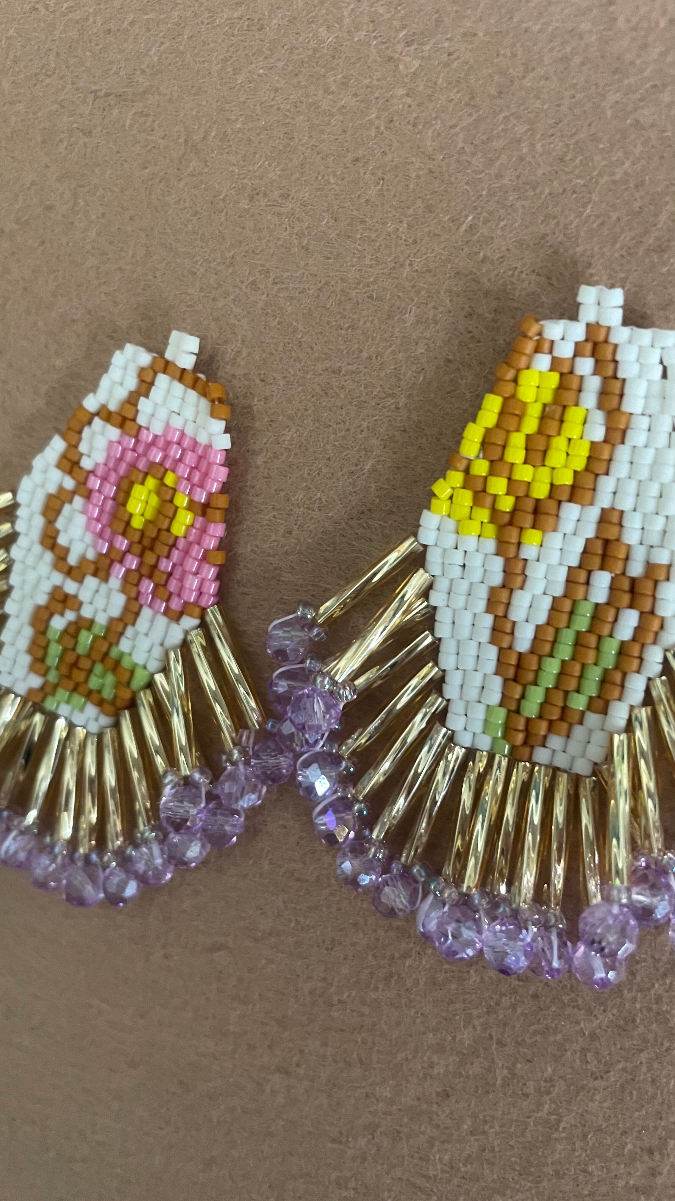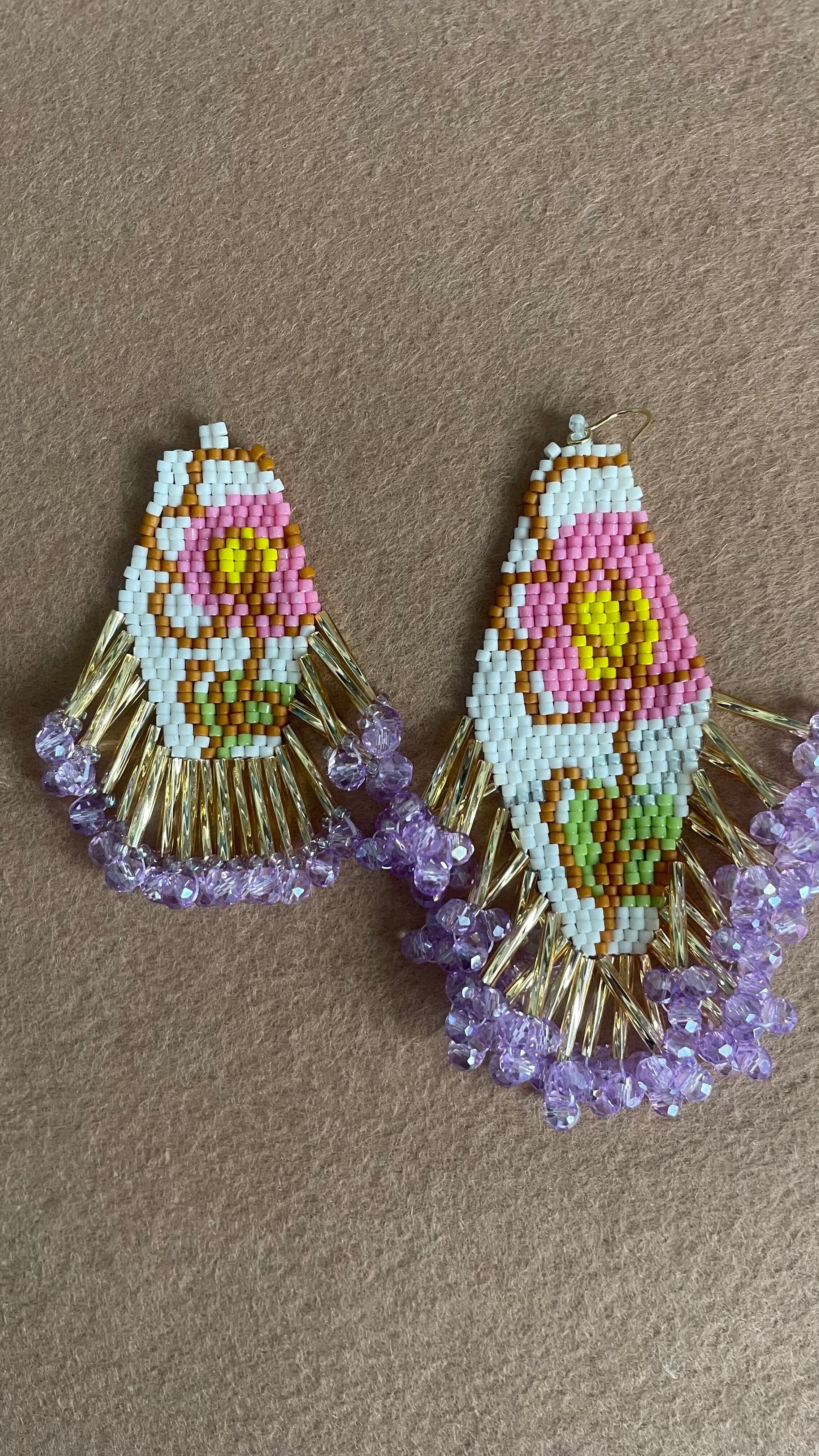 ※ 一本の糸で細かなビーズを編み付け、ぶら下げているので