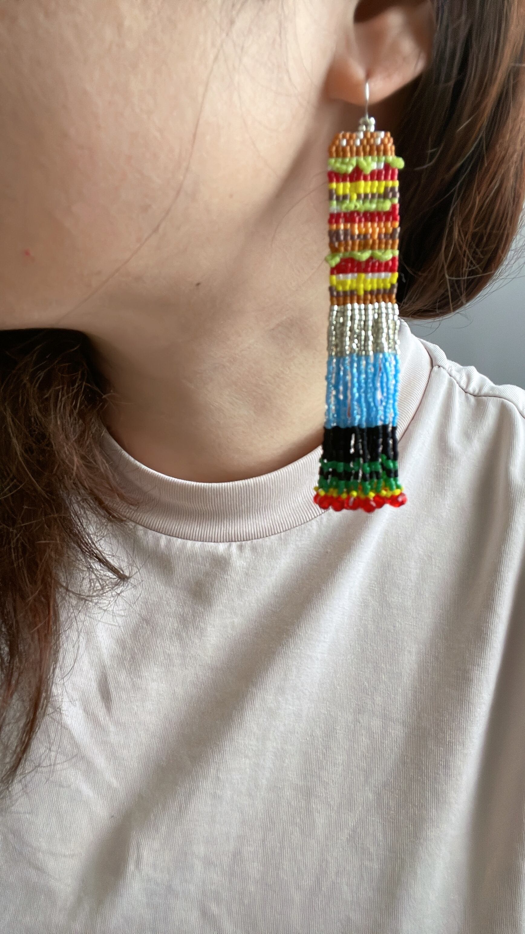 ※ 一本の糸で細かなビーズを編み付け、ぶら下げているので