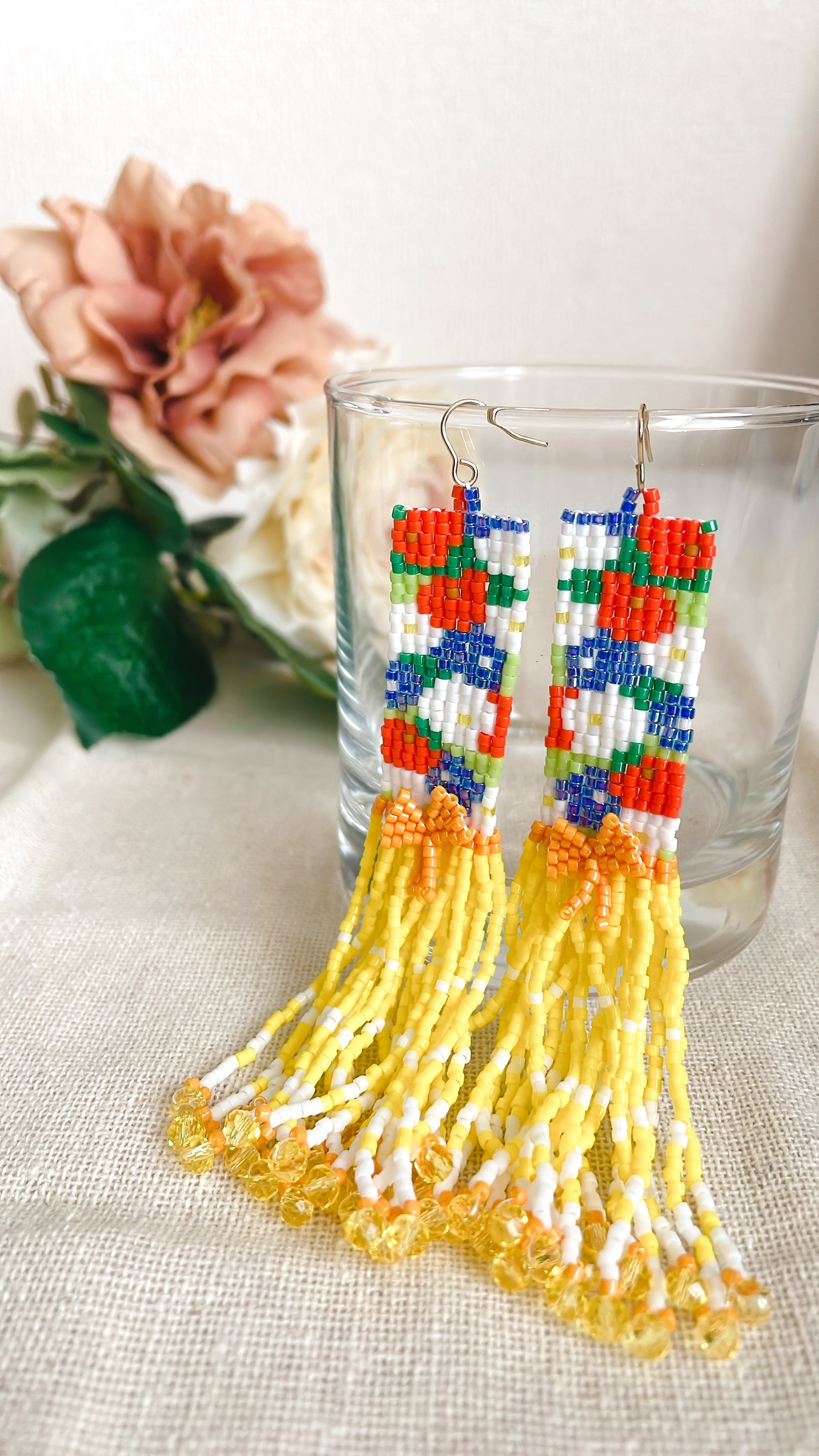 ※ 一本の糸で細かなビーズを編み付け、ぶら下げているので